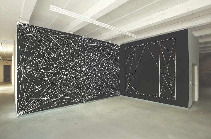 . 24 lines from the center 12 lines from the midpoint of each of the sides 12 lines from each corner 1976 from Wall Drawing 289 installation view Programmed. SOL LEWITT 1928-2007 Axa Center New York c. Fourth wall only January 1978.